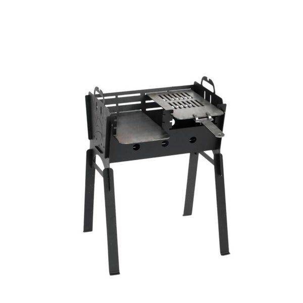 Pratique et efficace, ce barbecue de pique-nique est idéal pour les pique-niques, sur la terrasse ou le balcon. Facile à manipuler, il se plie et se déplie facilement, ce qui le rend facile à transporter et peu encombrant. Fabriqué avec des matériaux de première qualité, une tôle de 3 mm d'épaisseur et une plaque de 5 mm d'épaisseur garantissent une longue durée de vie. Il est également doté d'une peinture résistante à la chaleur jusqu'à 800 °C et anticorrosion. Il peut être monté sur pieds ou utilisé sans. Une broche avec poignées est intégrée. Du bois d'allumage est utilisé, tandis que des briquettes et du charbon de bois maintiennent la température. Ce barbecue de pique-nique est le complément idéal de tout pique-nique.